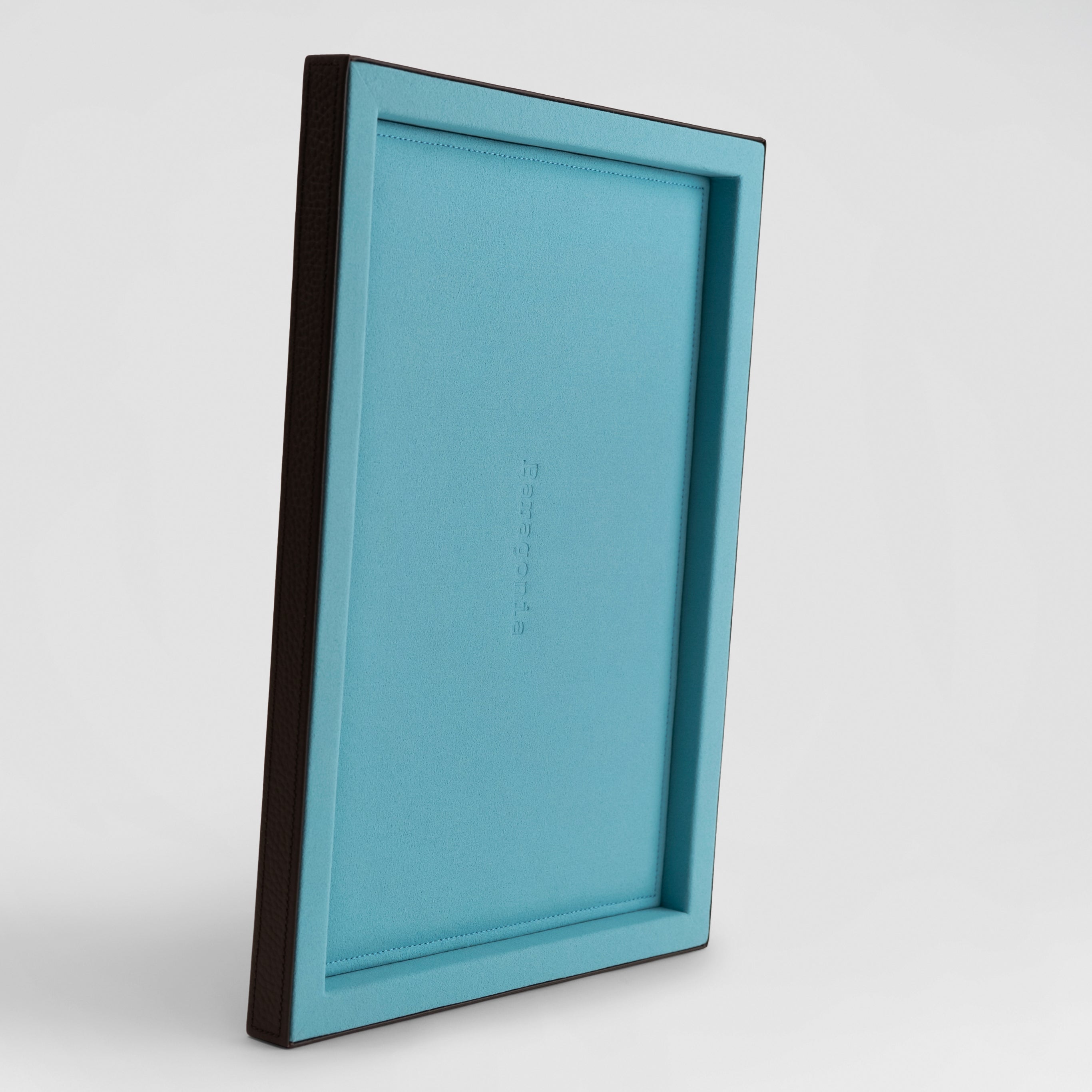 The Presentation Tray is a statement piece for showcasing objects of distinction. Wrapped in rich brown leather, its exterior embodies timeless refinement, while the padded blue Alcantara surface within offers both a soft contrast and a stage of quiet luxury. Designed for presenting timepieces, jewelry, or precious details, the tray transforms display into an experience of elegance and intent. Every line and texture reflects meticulous craftsmanship, ensuring that what rests upon it is elevated with subtle grandeur.