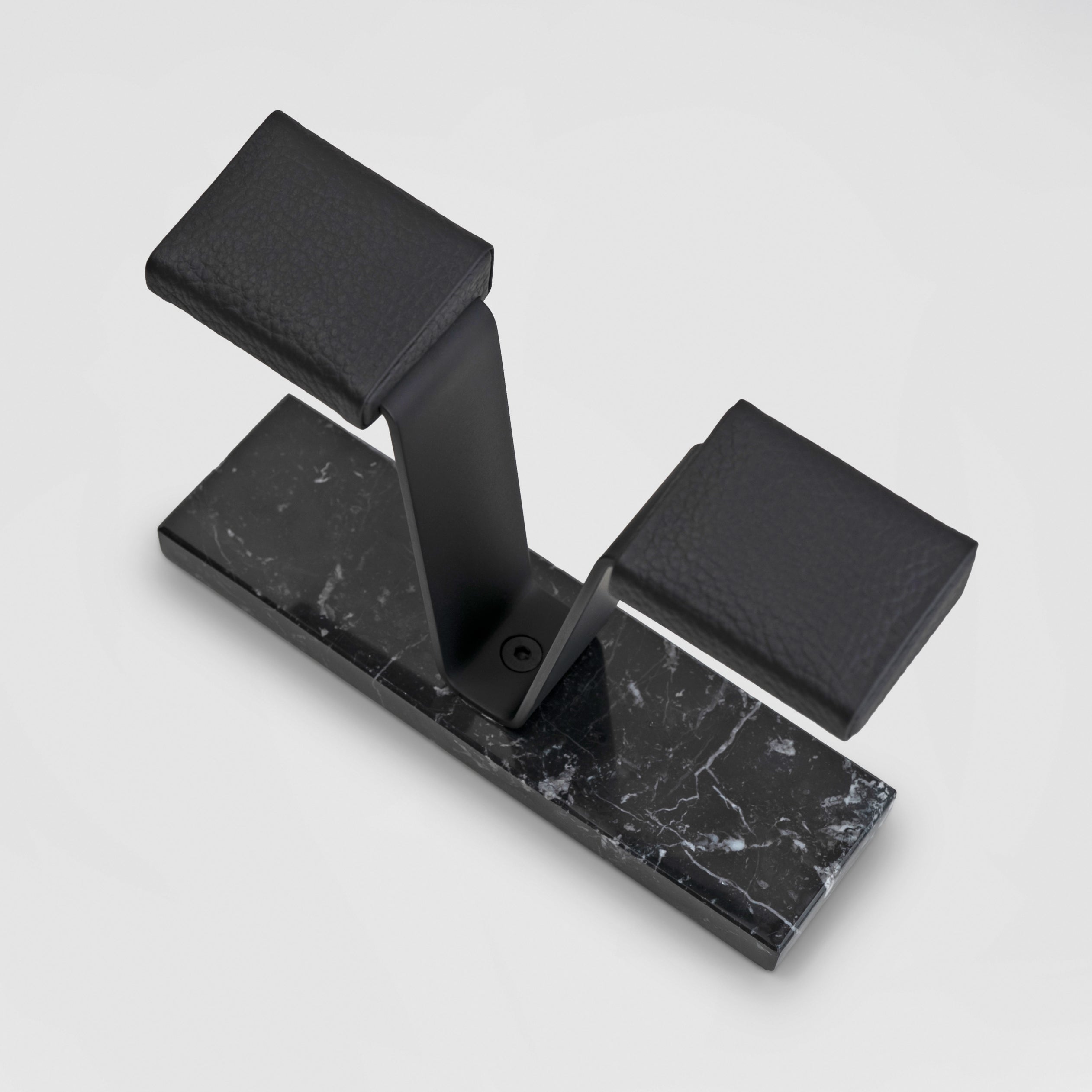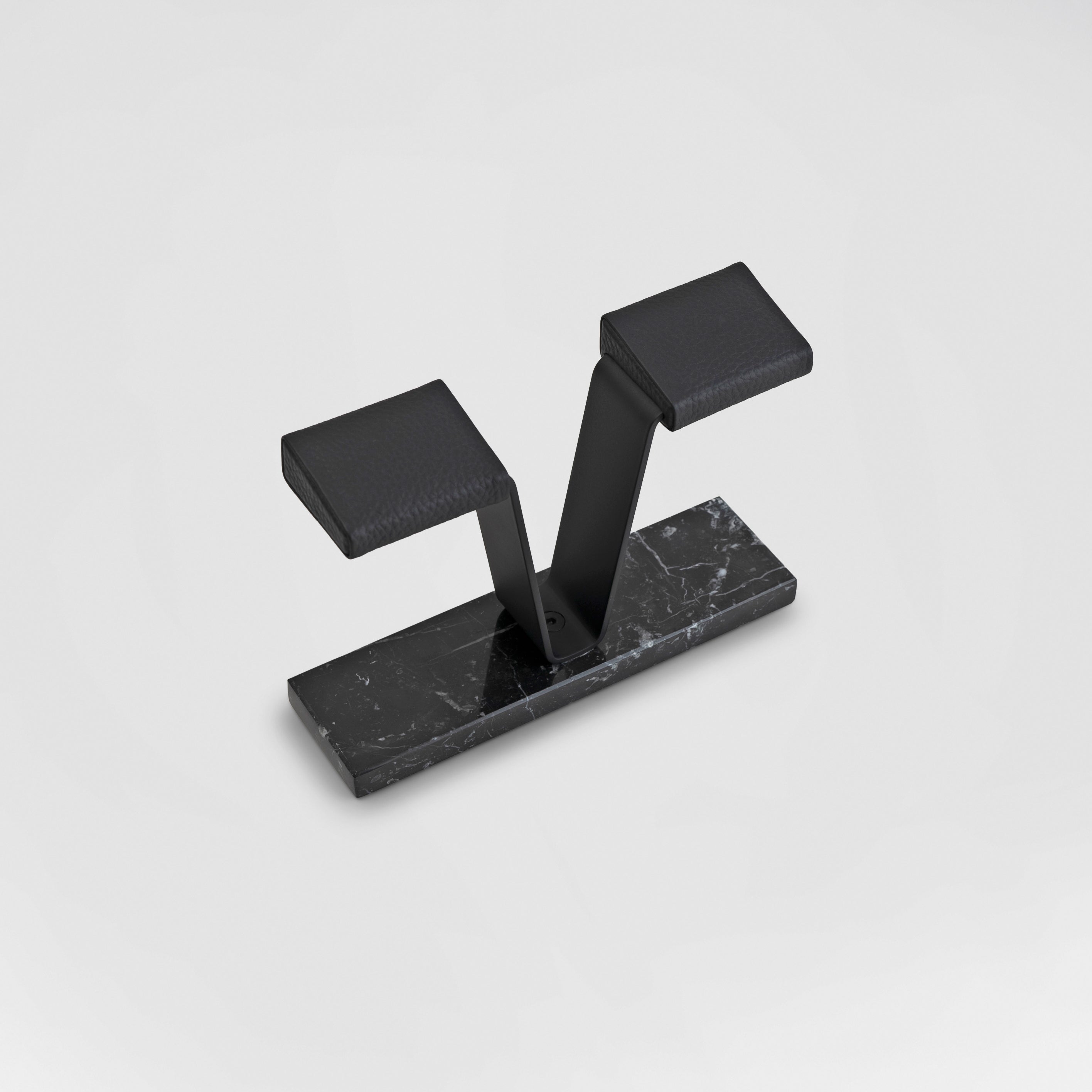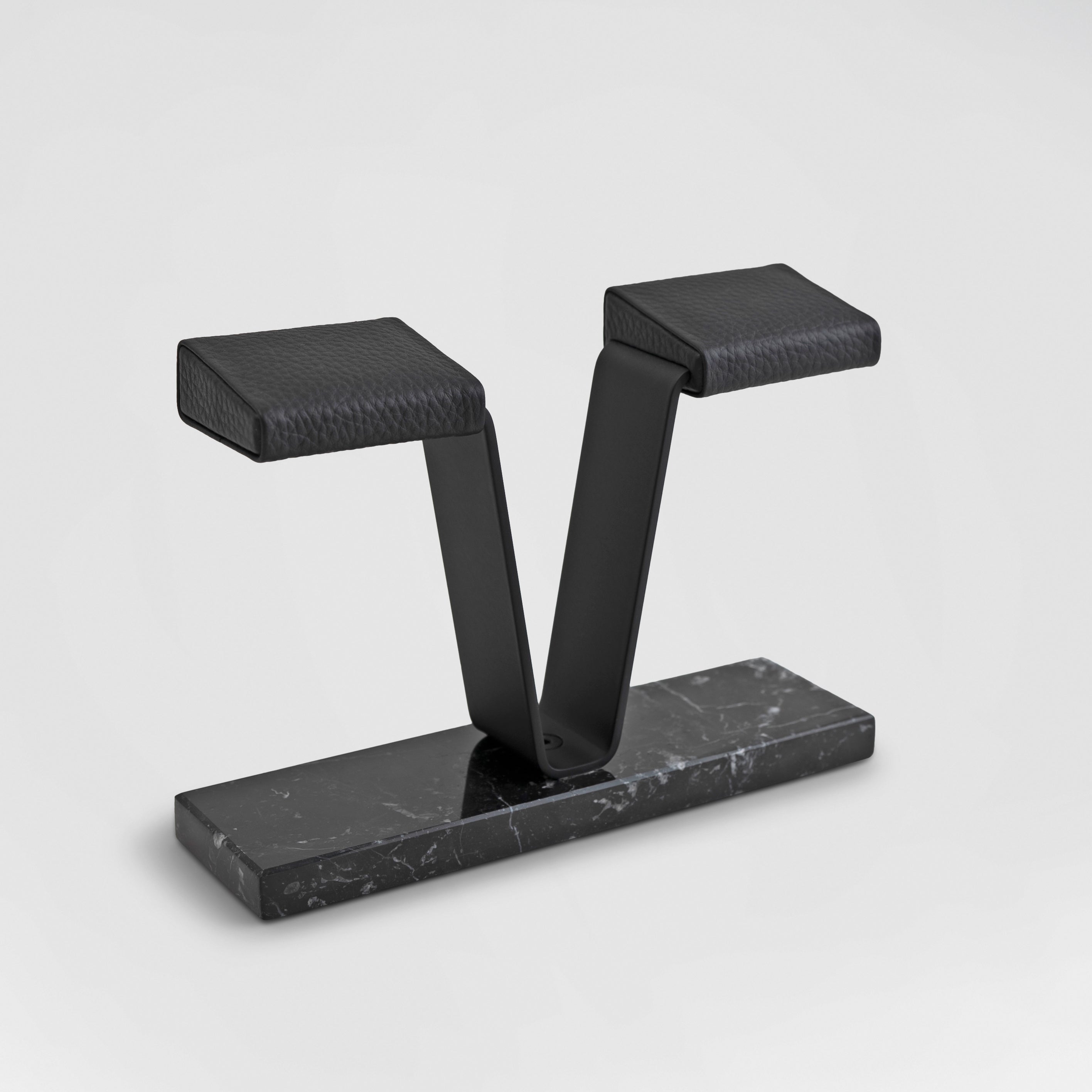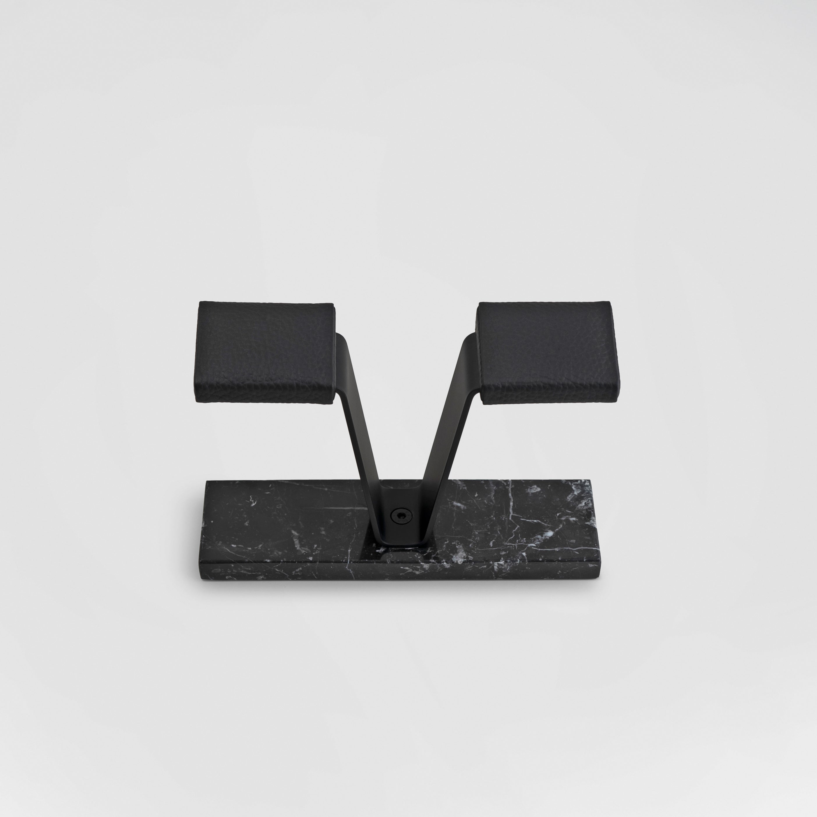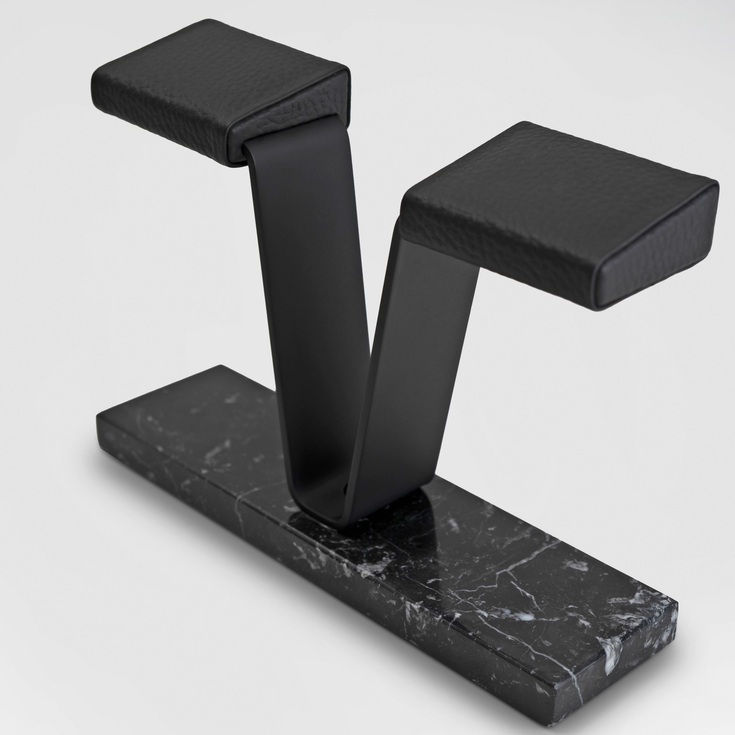 For those who appreciate bold refinement, the Black Marble Edition of the Paragonia Gullwing Watch Stand offers a striking aesthetic. The deep black marble base anchors a minimalist black steel stem, complemented by supple black leather cushions. This stand is a statement piece, seamlessly blending opulence with modernity. Let your watches rest in an environment crafted for those who demand nothing less than excellence.